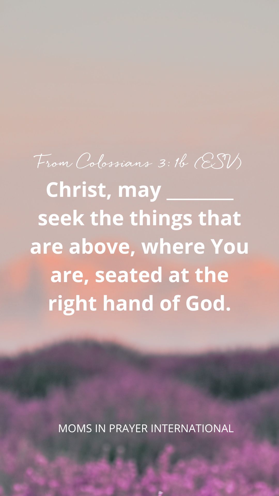 Prayer Christ, may ________ seek the things that are above, where You are, seated at the right hand of God. From Colossians 3:1b (ESV)