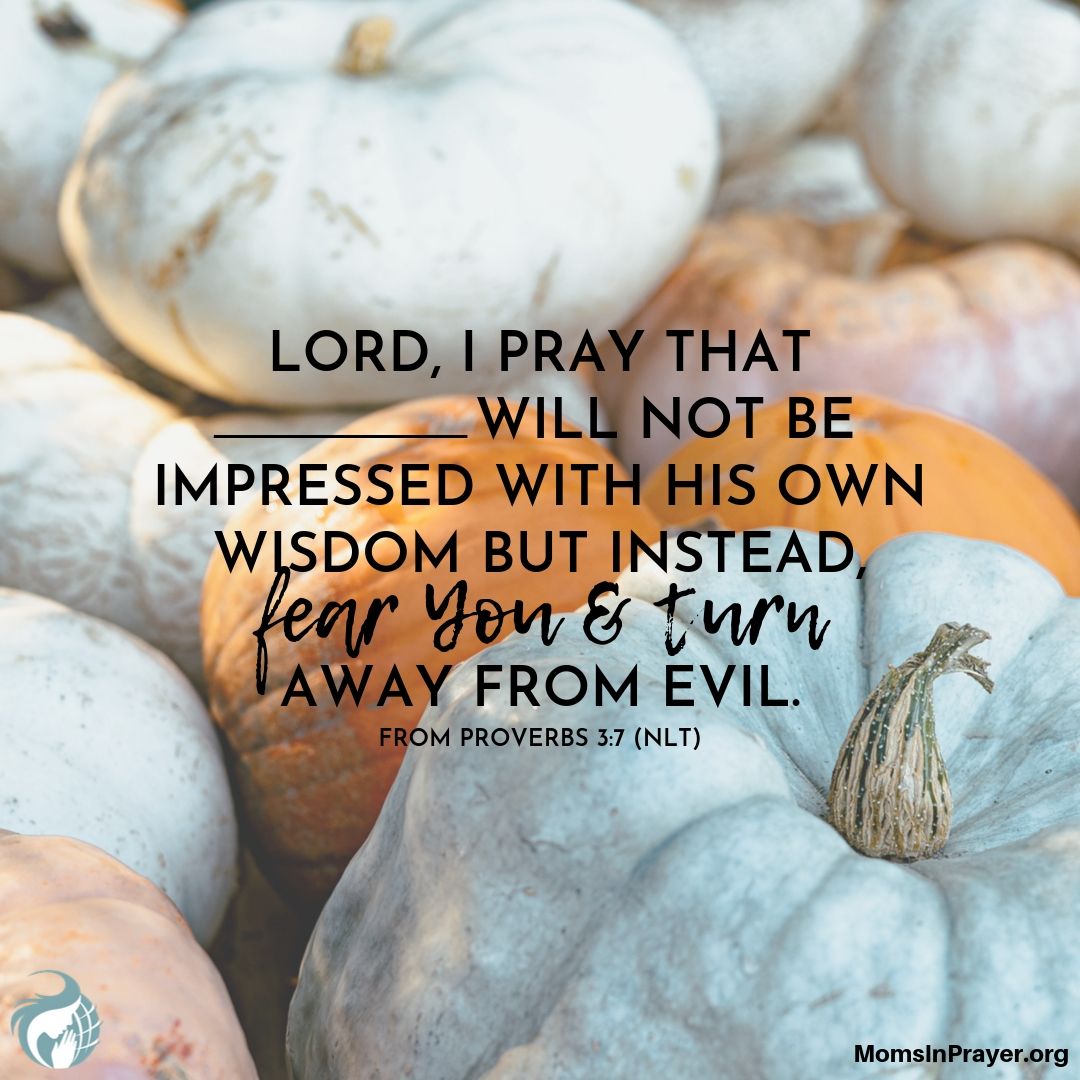 LORD, I pray that ________ will not be impressed with his own wisdom but instead, fear You and turn away from evil.