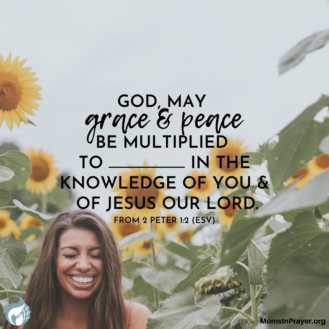 God, may grace and peace be multiplied to ________ in the knowledge of You and of Jesus our Lord.