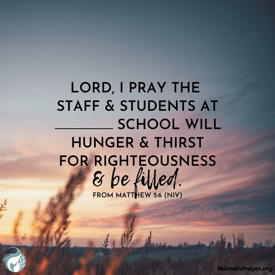 Lord, I pray the staff and students at ________ school will hunger and thirst for righteousness and be filled.