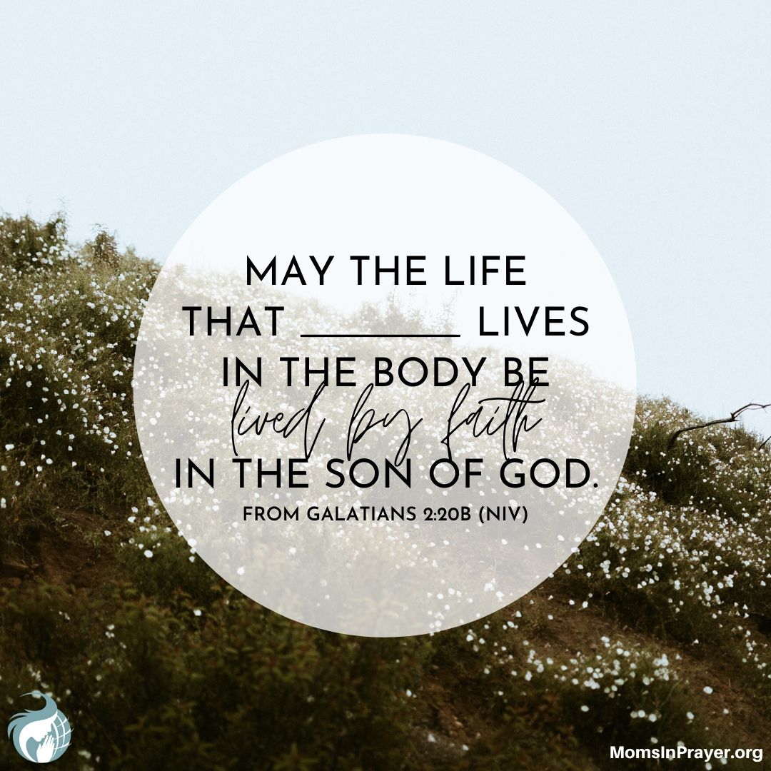 主啊!求祢使 ________ 能體悟他/她的肉身如今活著,乃是相信神的兒子主耶穌基督就在他/她裡面活著!