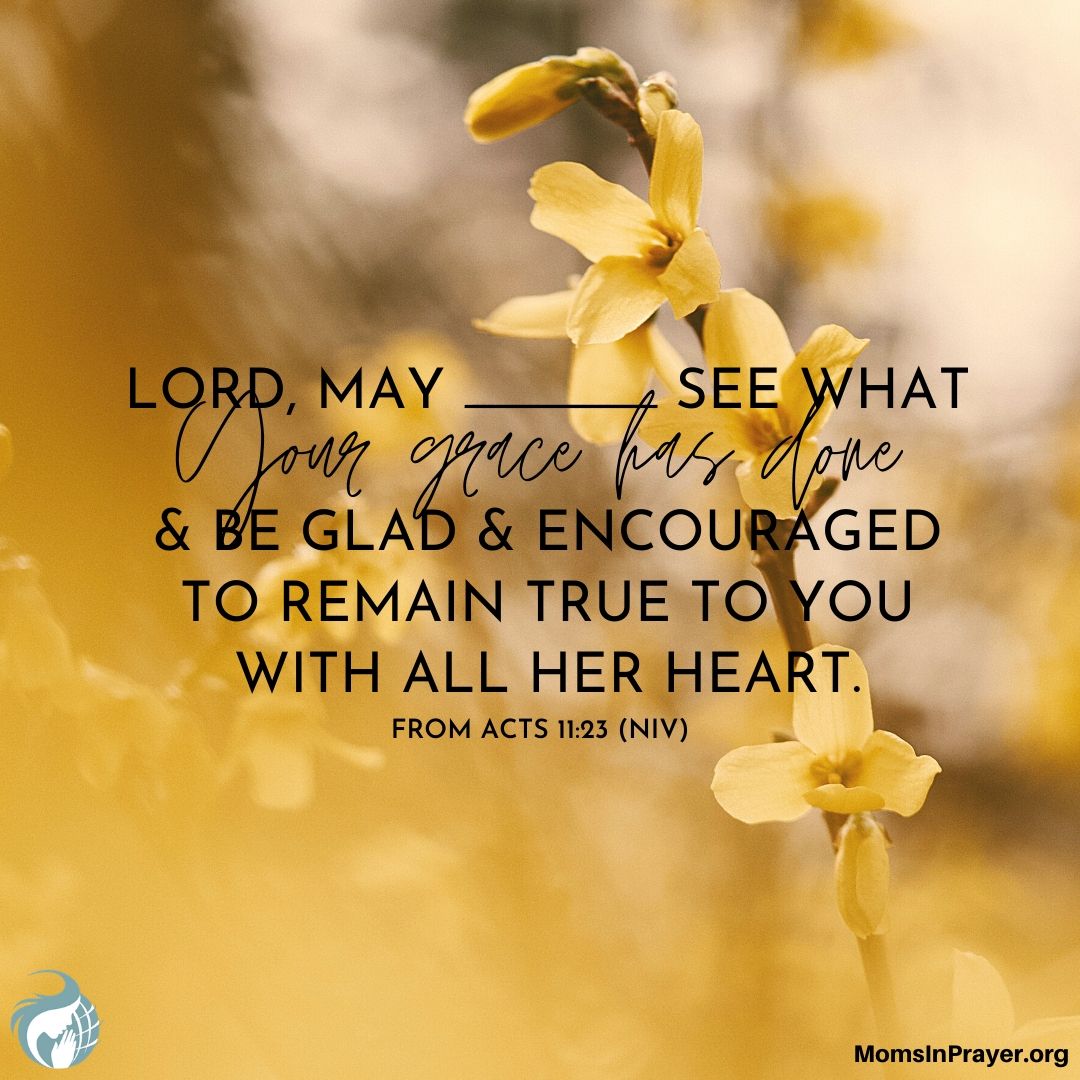 Lord, may ______ see what Your grace has done and be glad and encouraged to remain true to You with all her heart.