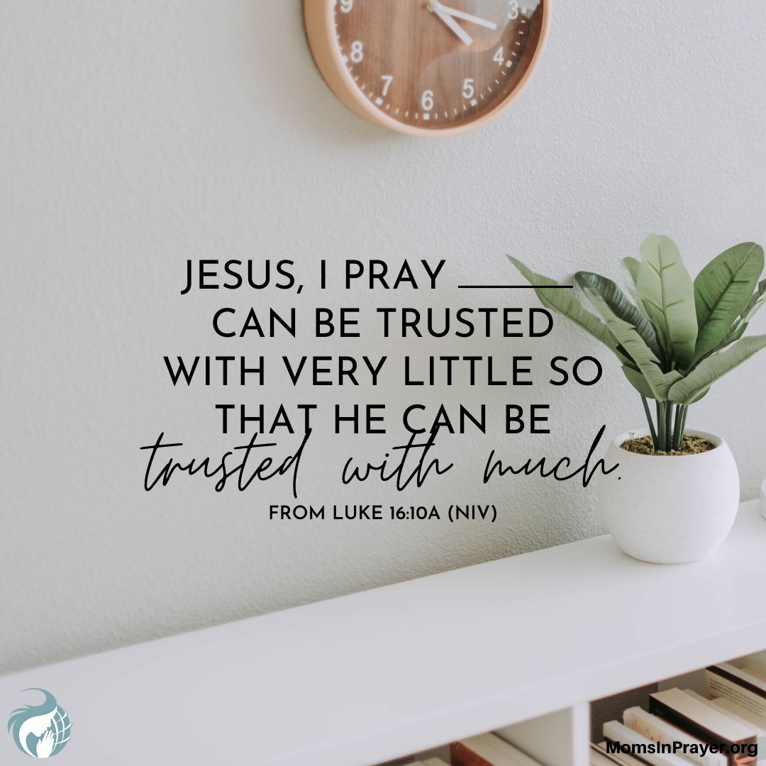 Jesus, I pray ______ can be trusted with very little so that he can be trusted with much.