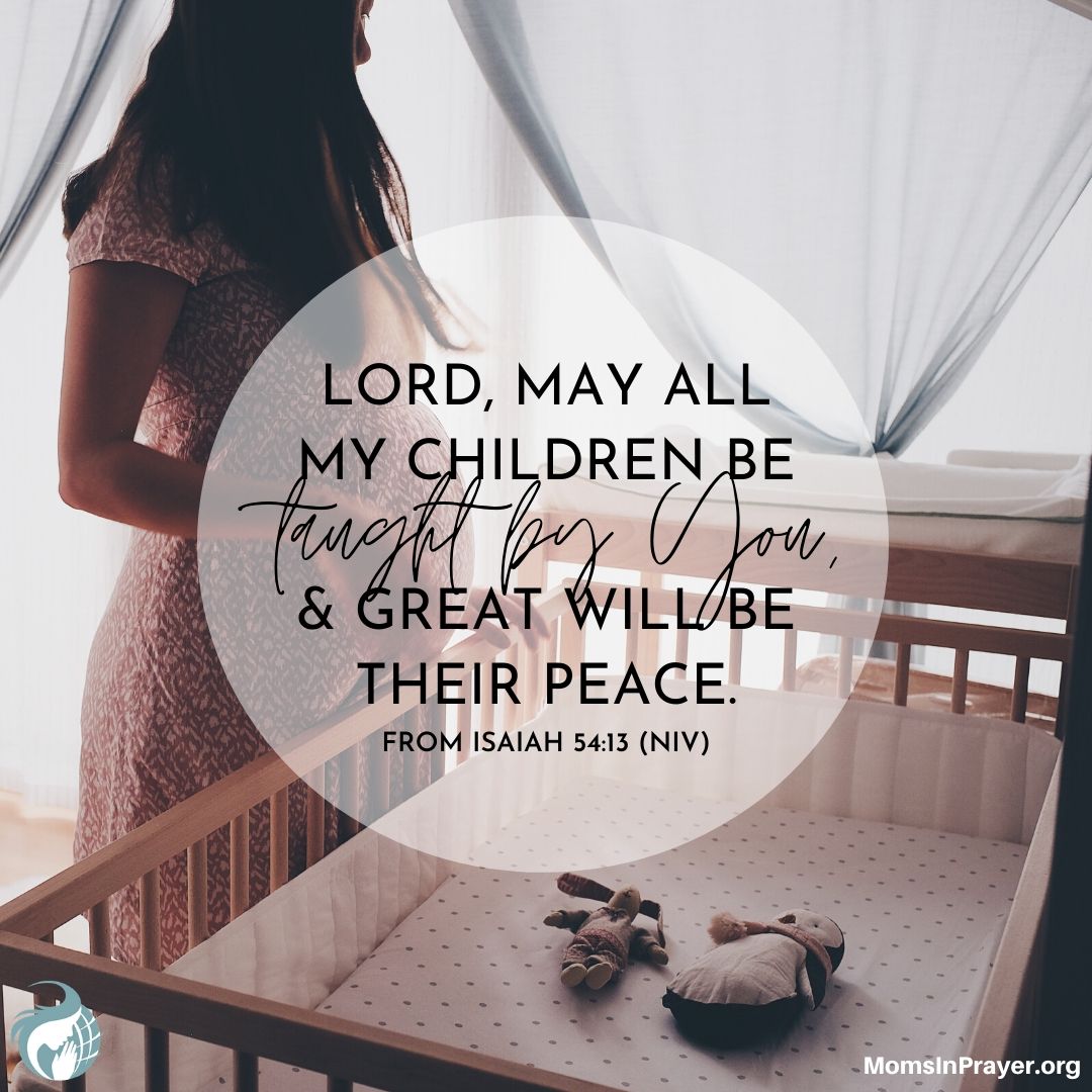 主啊!願我的兒女都能受祢的教誨,他/她也因此必大享平安。 以賽亞書54:13 (NIV)