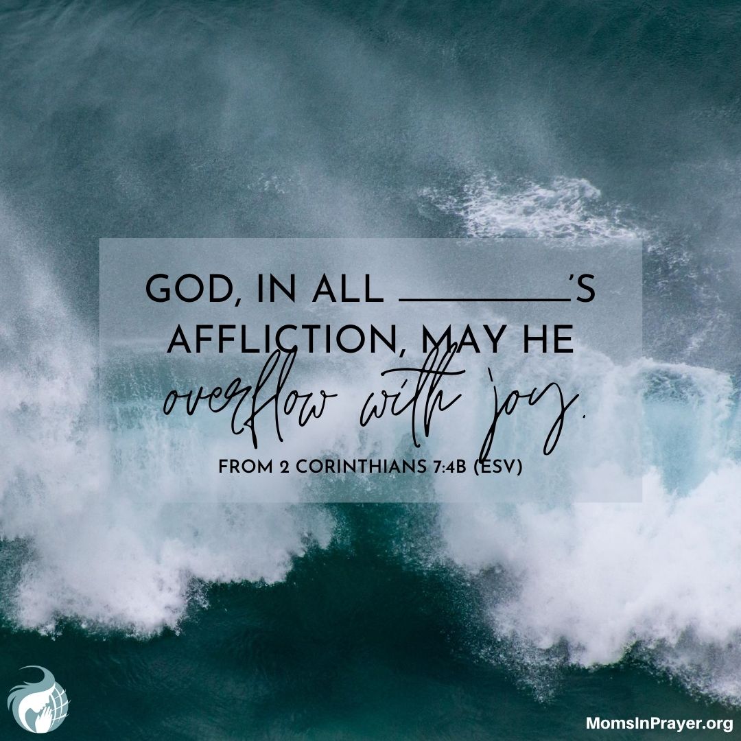 天父,求祢幫助 ________ 在一切患難中分外的快樂。