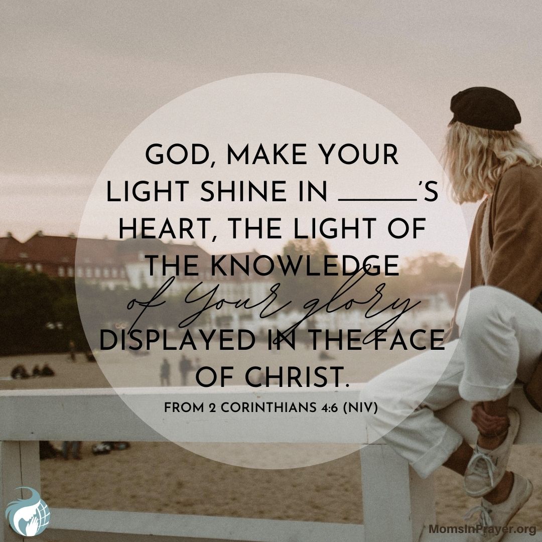 God, make Your light shine in ________’s heart, the light of the knowledge of Your glory displayed in the face of Christ.