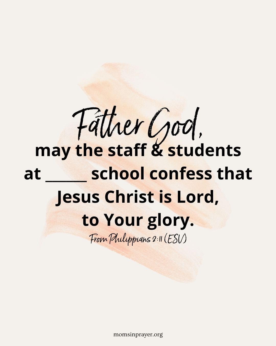 Father God, may the staff and students at ______ school confess that Jesus Christ is Lord, to Your glory.