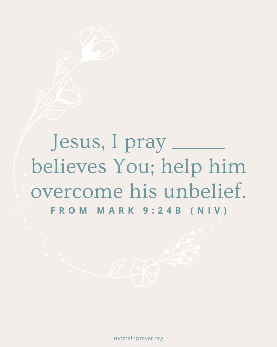 Jesus, I pray ______ believes You; help him overcome his unbelief.