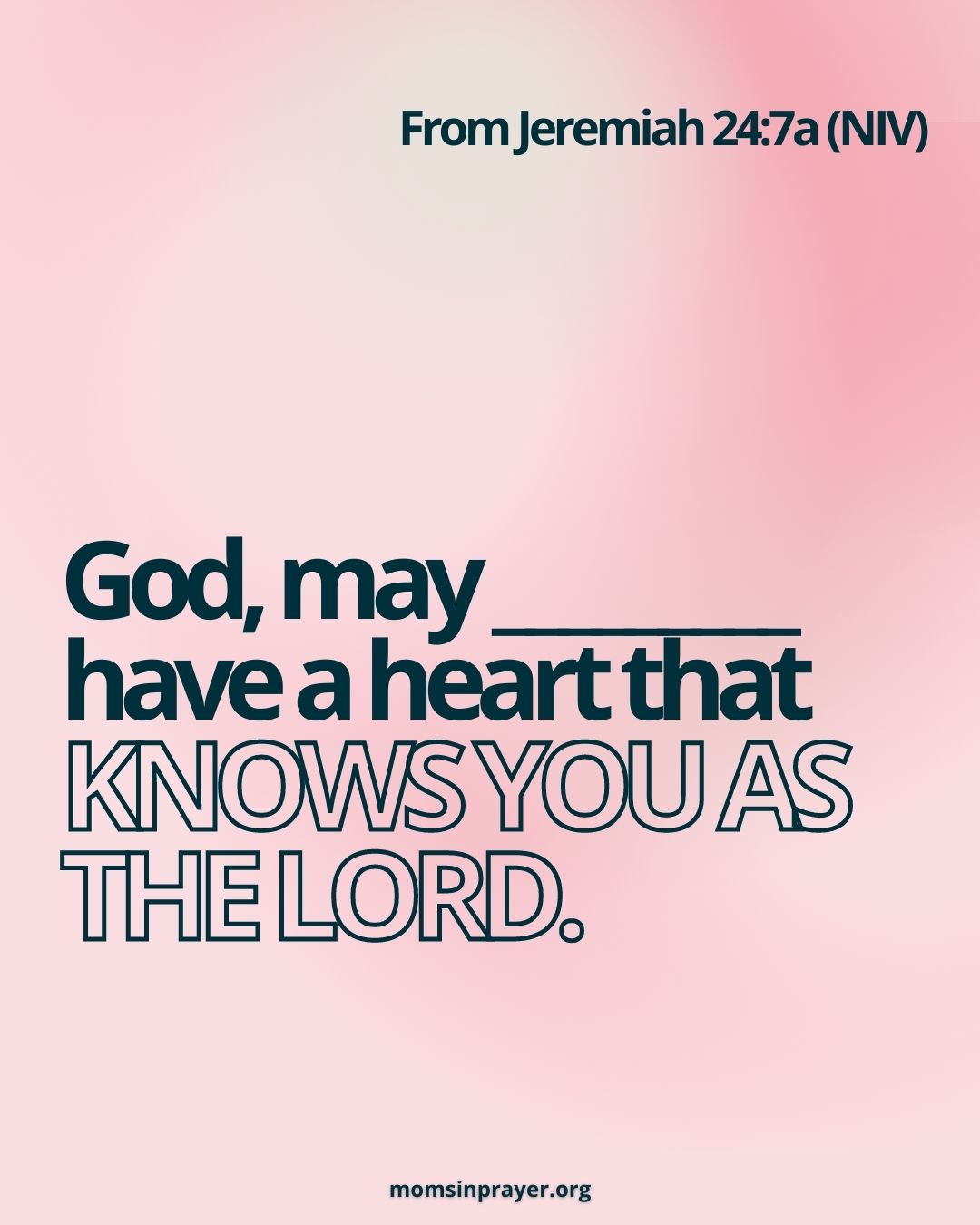 父神!求祢賜給 _______ 一顆心,使他/她認識祢是主耶和華。