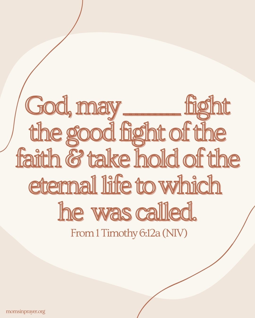 主啊!求祢呼召 _______ 為真道打那美好的仗,並持定永生。