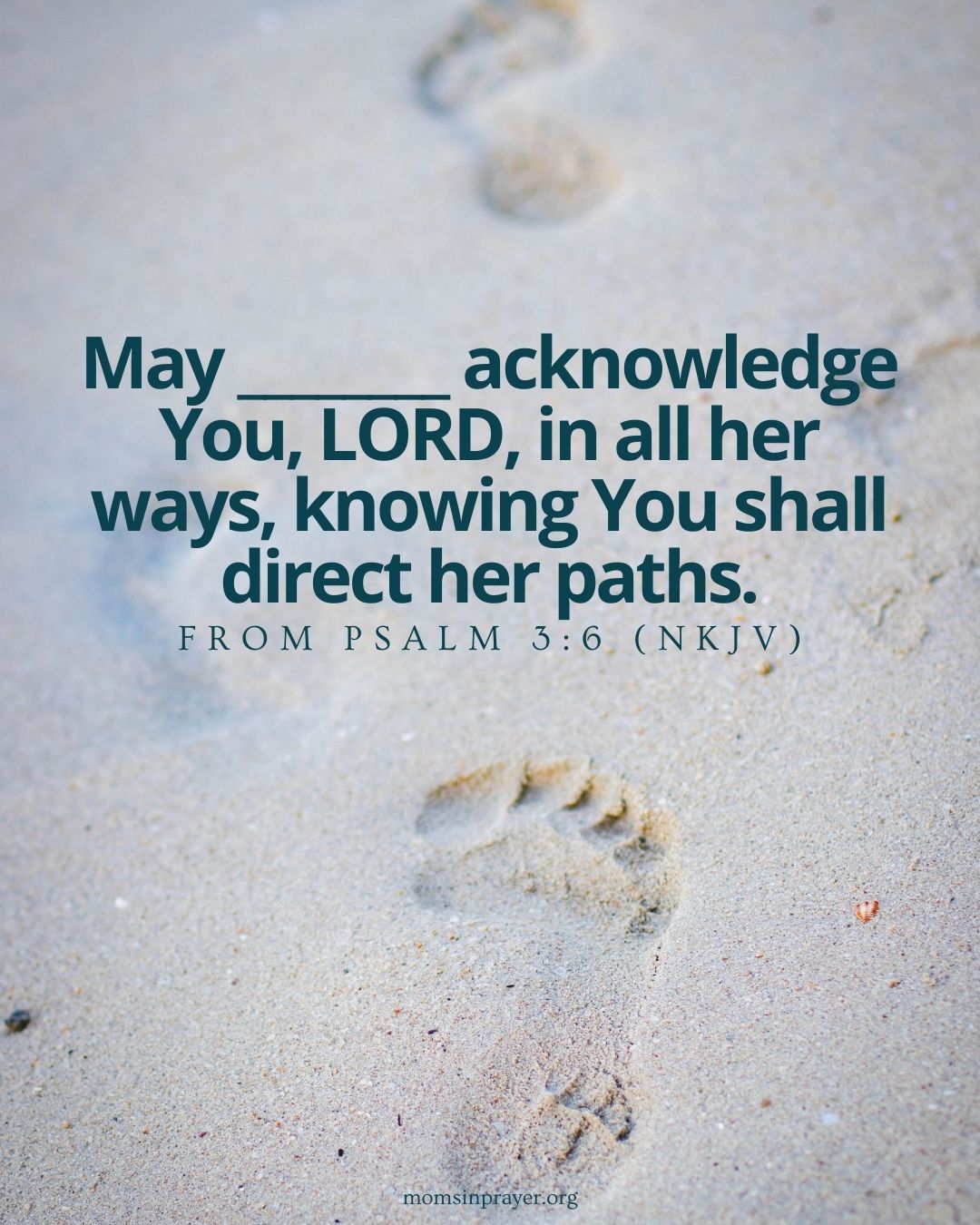May ________ acknowledge You, LORD, in all her ways, knowing You shall direct her paths.