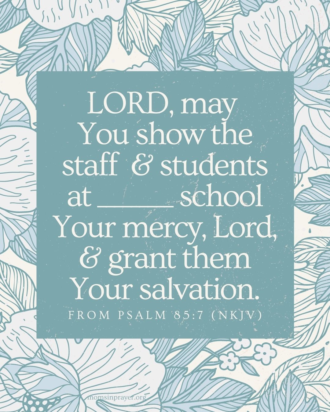 LORD, may You show the staff and students at ________ school Your mercy, Lord, and grant themYour salvation.