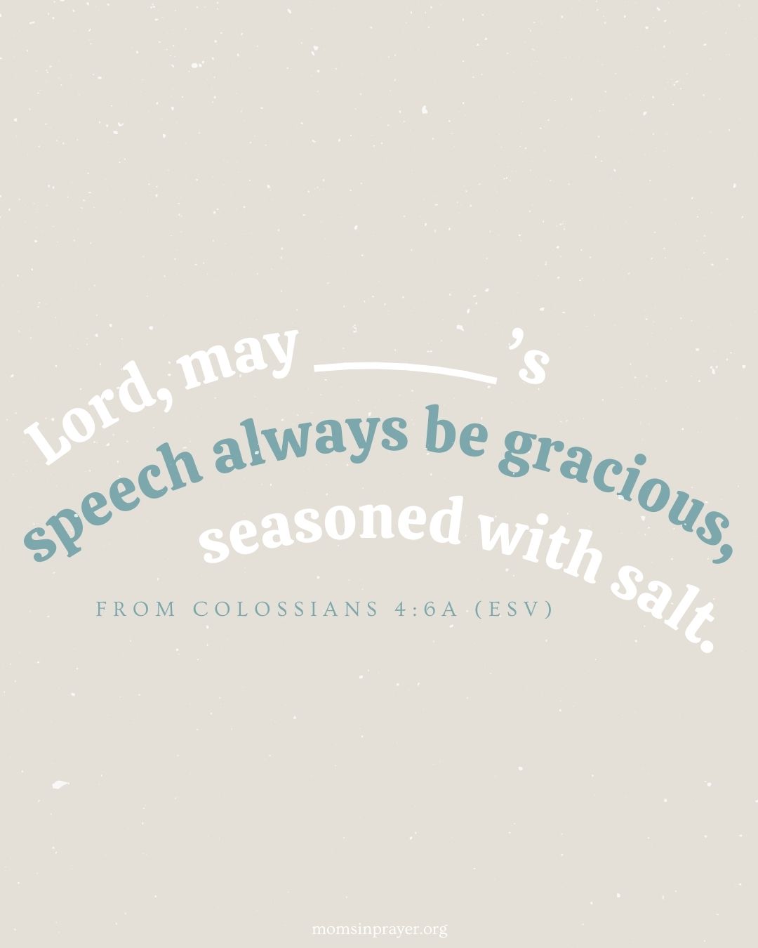 Lord, may ______ 's speech always be gracious, seasoned with salt.