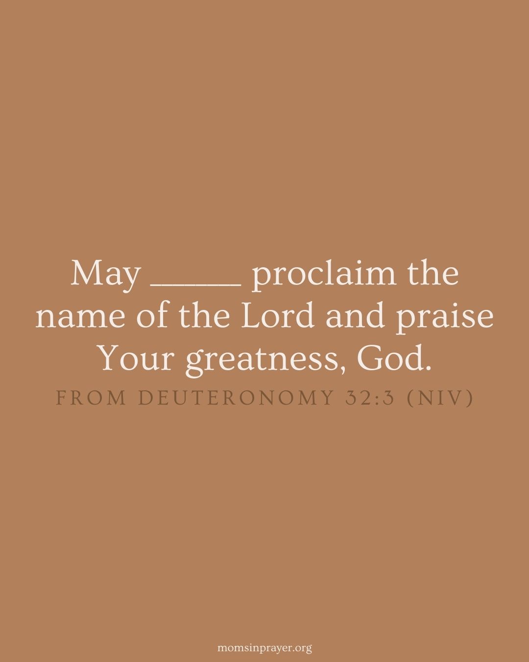 May ______ proclaim the name of the Lord and praise Your greatness, God.