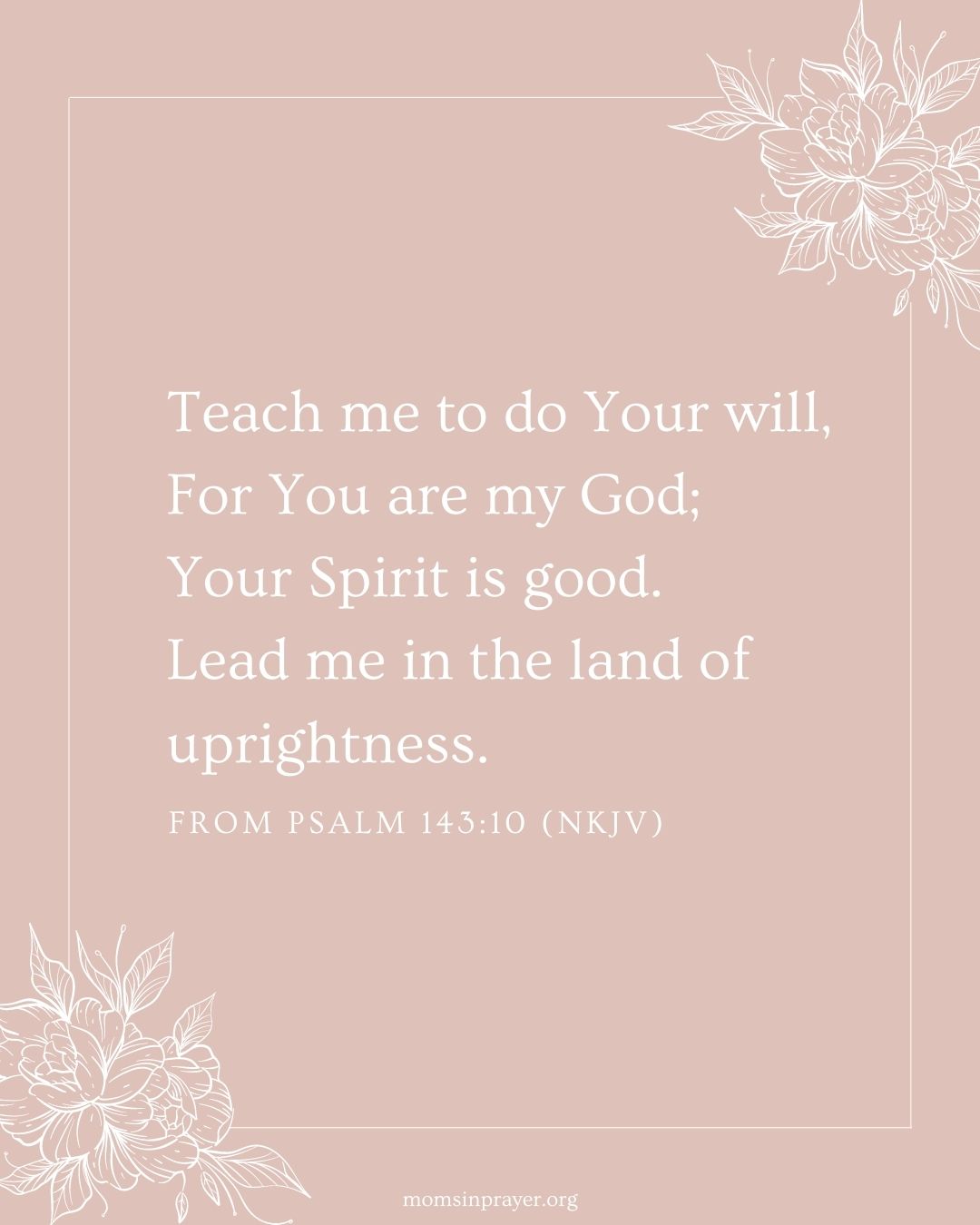 Teach me to do Your will, For You are my God; Your Spirit is good. Lead me in the land of uprightness.