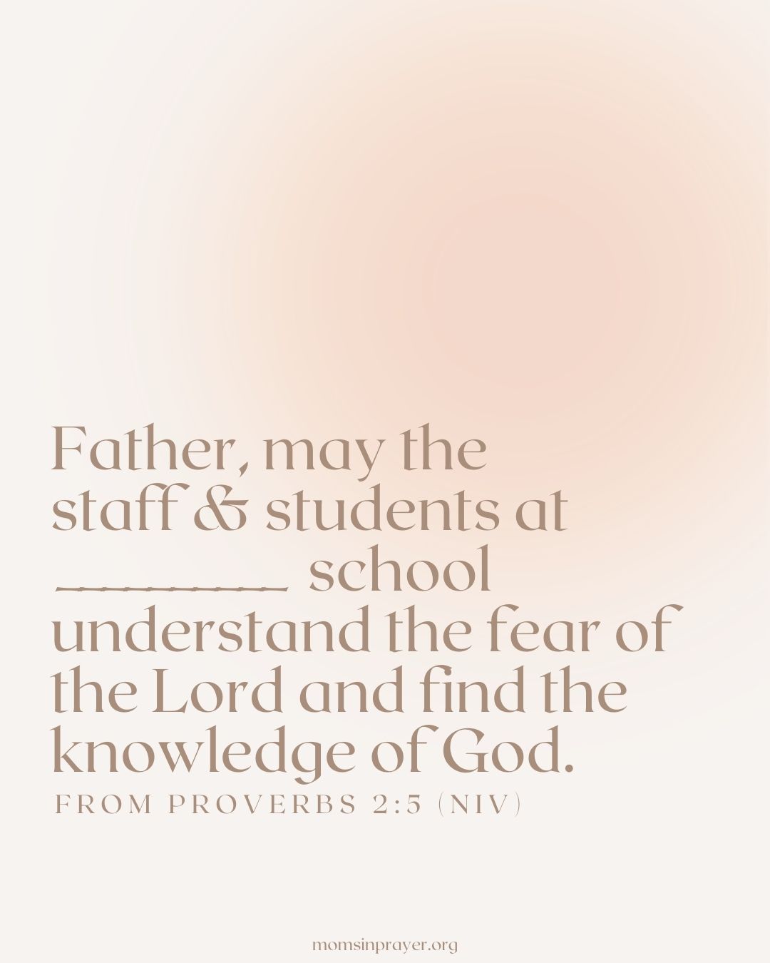 Father, may the staff and students at ________ school understand the fear of the Lord and find the knowledge of God.