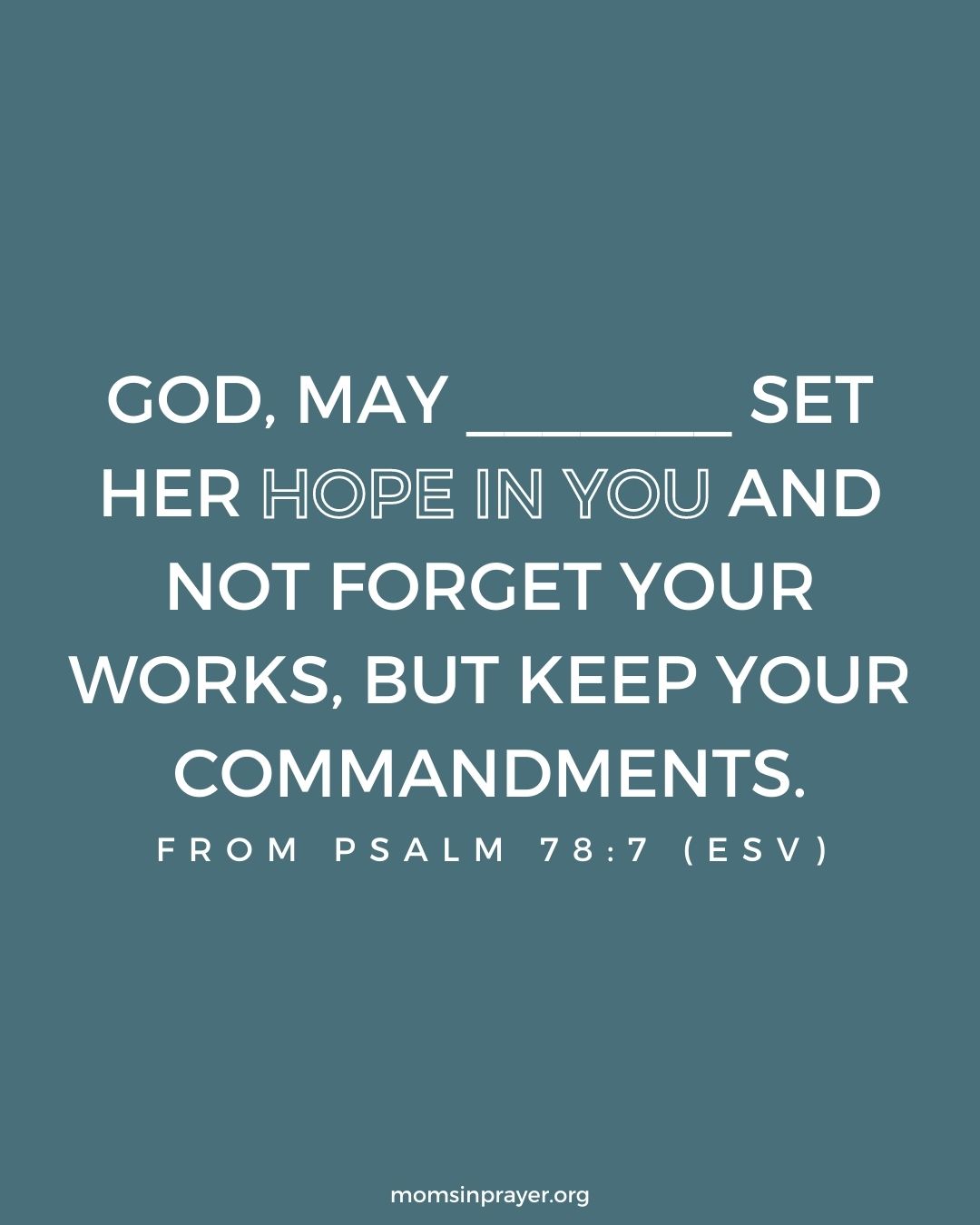 God, may _______ set her hope in You and not forget Your works, but keep Your commandments.