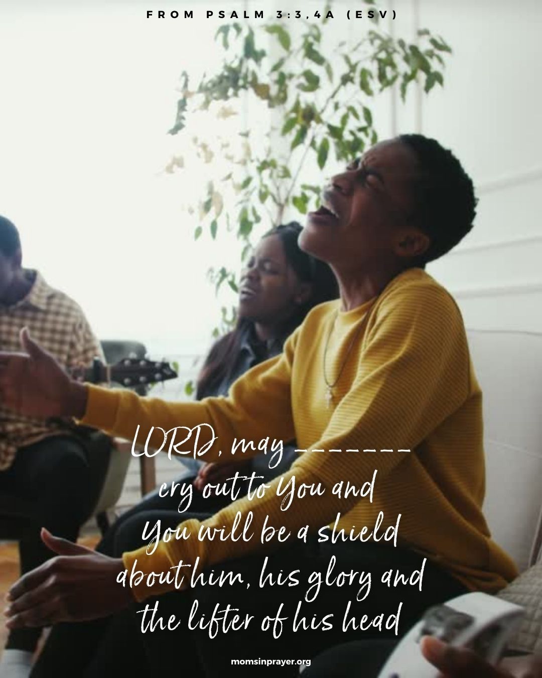 LORD, may _______ cry out to You and You will be a shield about him, his glory and the lifter of his head.