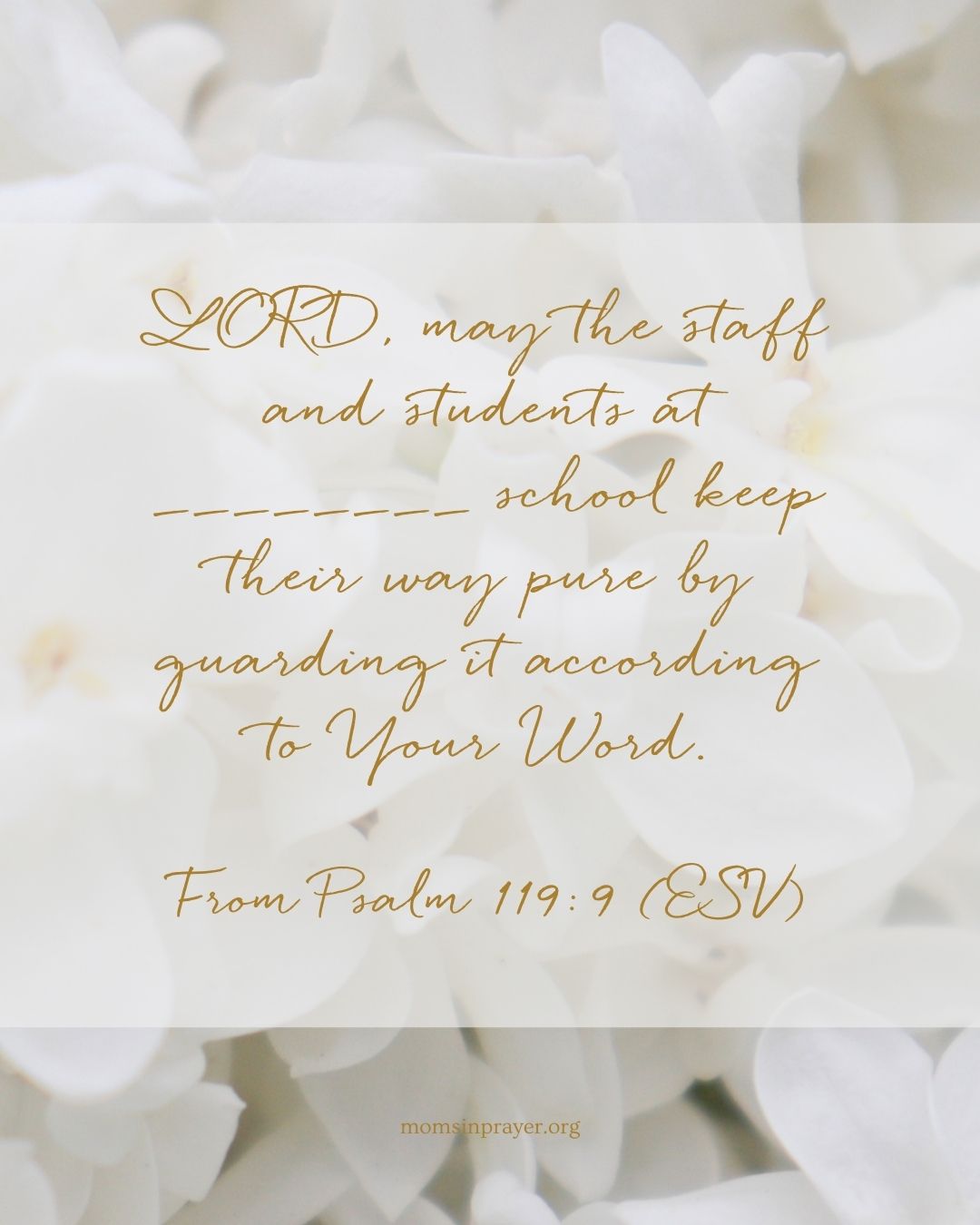 LORD, may the staff and students at ________ school keep their way pure by guarding it according to Your Word.