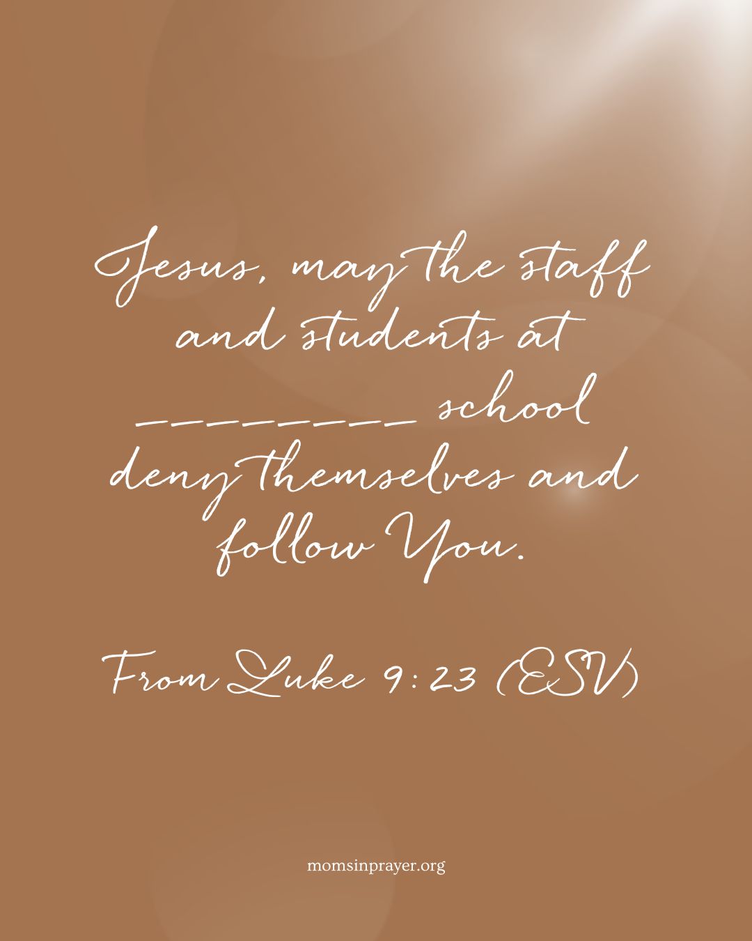 Jesus, may the staff and students at ________ school deny themselves and follow You.