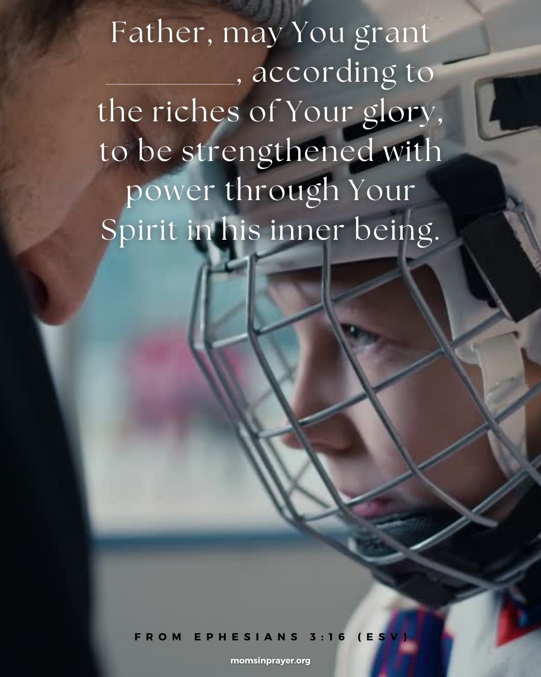 Father, may You grant ________, according to the riches of Your glory, to be strengthened with power through Your Spirit in his inner being. From Ephesians 3:16 (ESV)