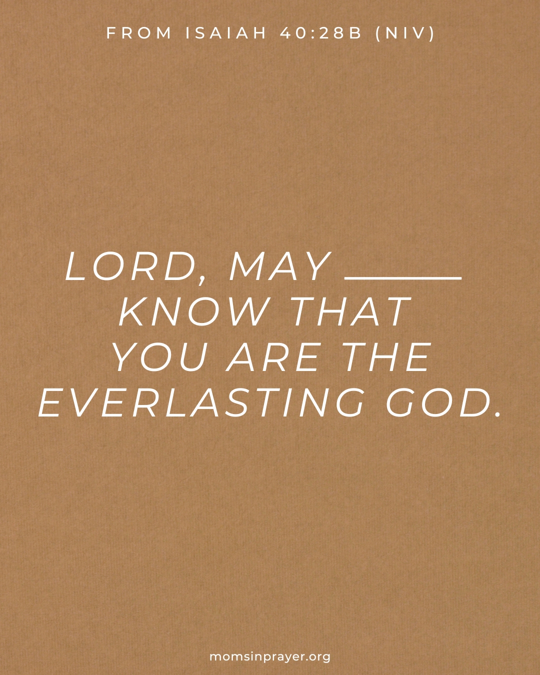 主啊!求祢讓(教職員姓名)知道祢就是永在的主耶和華,是創造地極的主,不疲乏,也不困倦;祢的智慧無法測度。