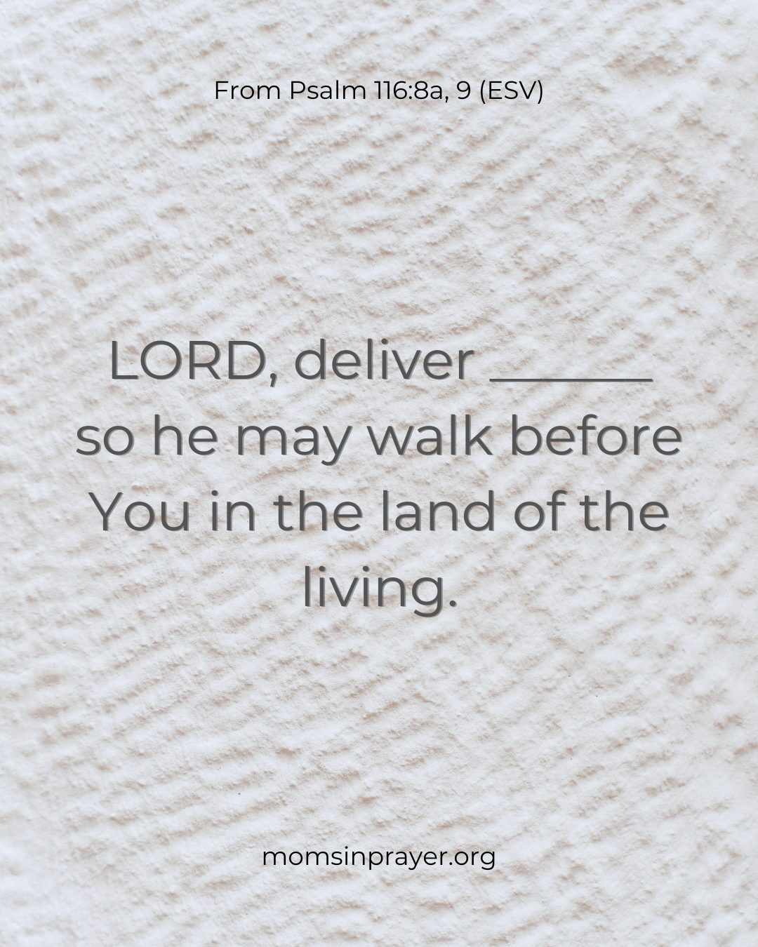 LORD, deliver ______ so he may walk before You in the land of the living.