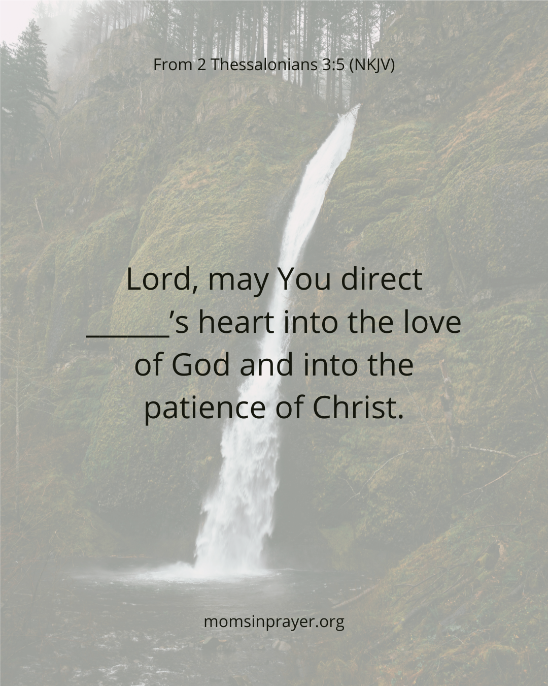 Lord, may You direct ______’s heart into the love of God and into the patience of Christ.