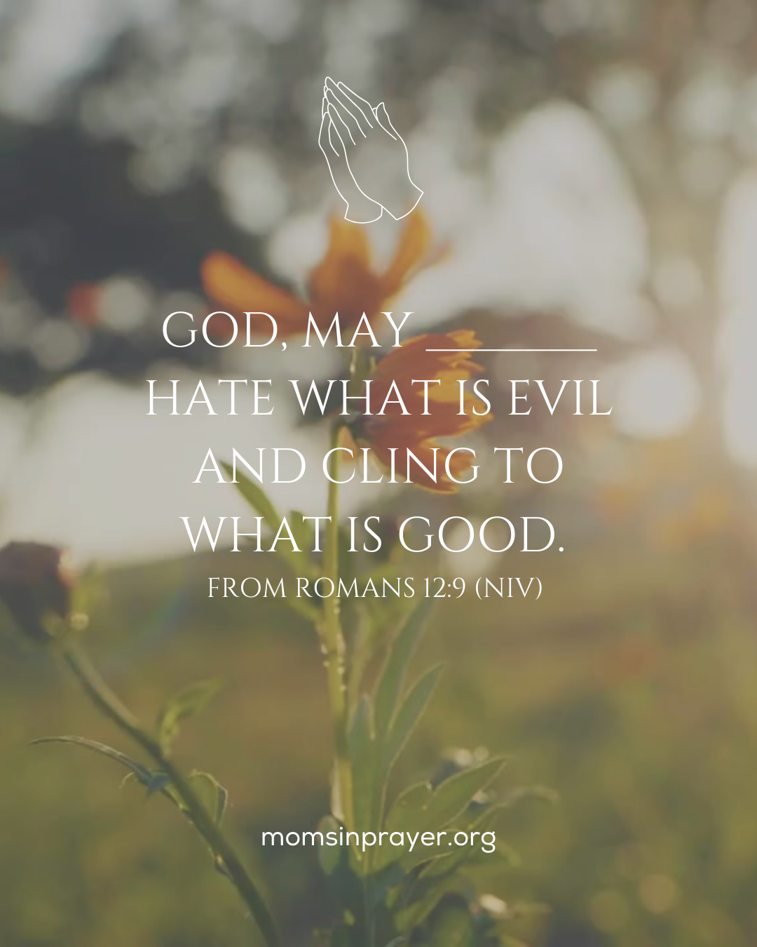 天父上帝!但願 __________ 對於惡,要厭惡;對於善,就親近。羅馬書 12:9 (NIV)