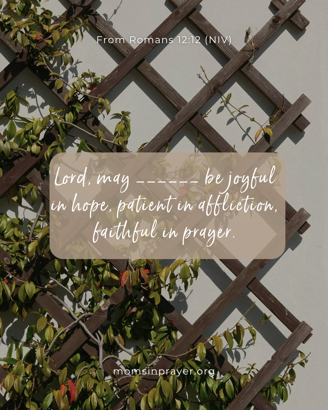 Lord, may ______ be joyful in hope, patient in affliction, faithful in prayer.