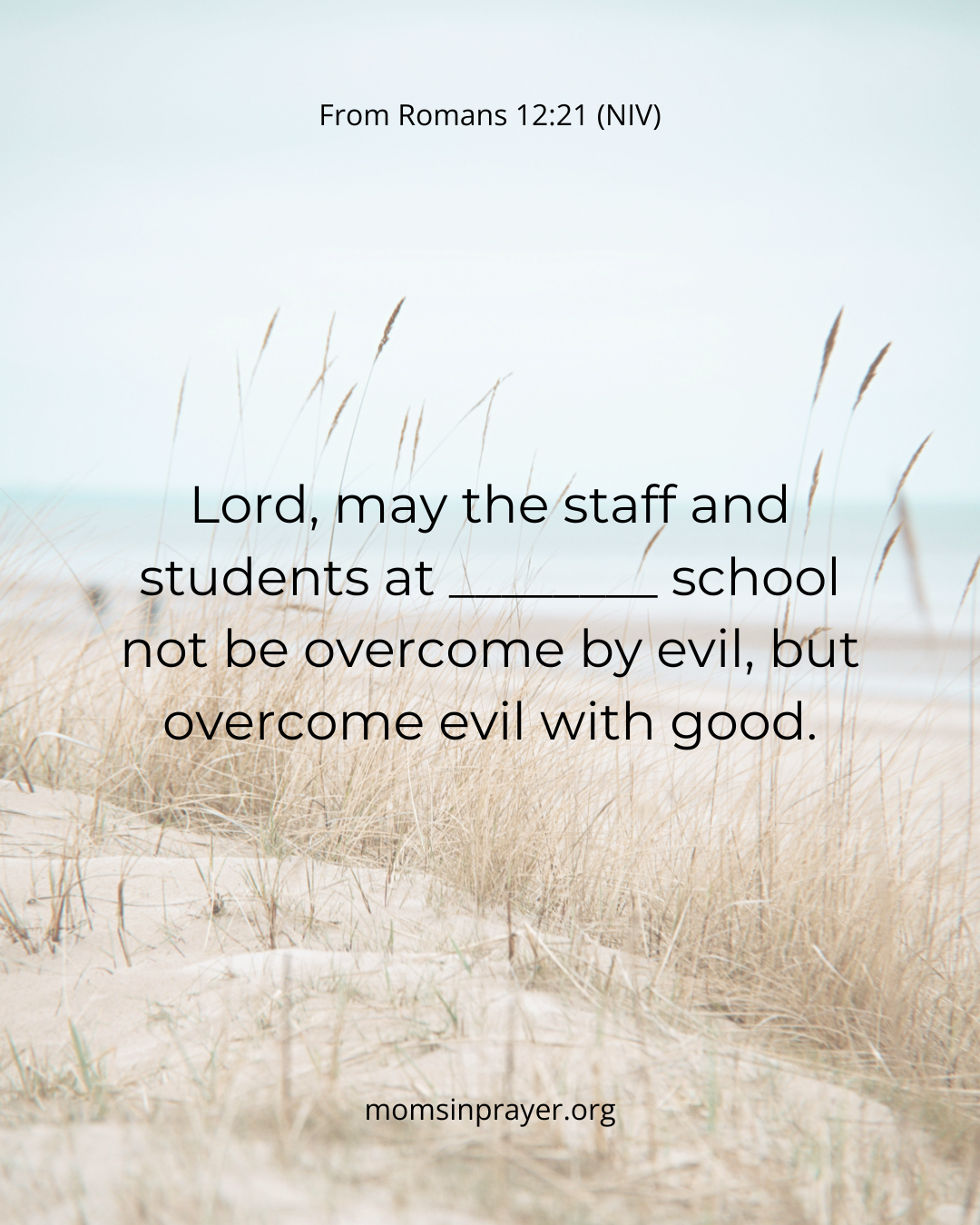 Lord, may the staff and students at ________ school not be overcome by evil, but overcome evil with good.