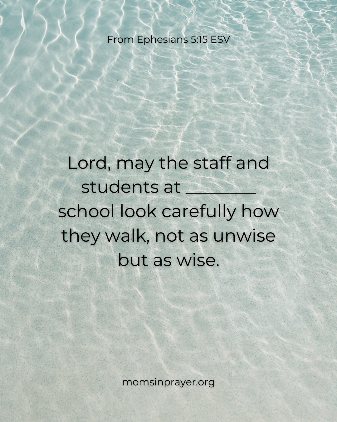 Lord, may the staff and students at ________ school look carefully how they walk, not as unwise but as wise.