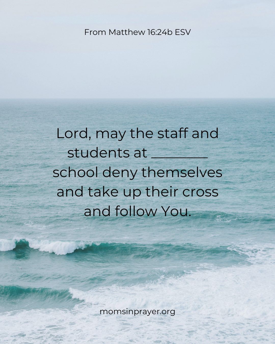 Lord, may the staff and students at ________ school deny themselves and take up their cross and follow You.