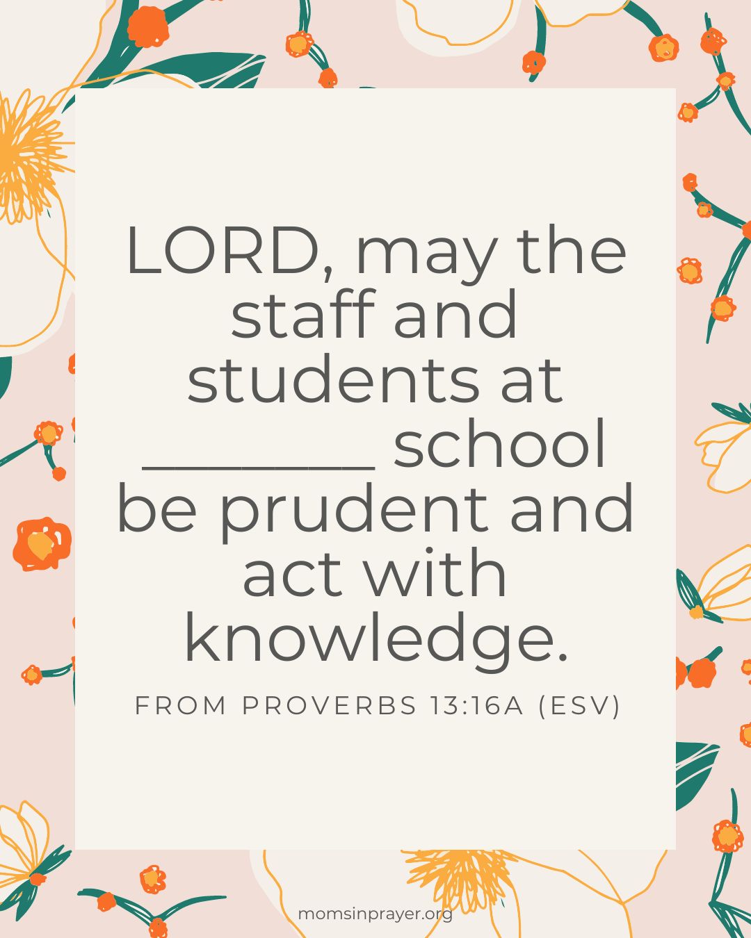 LORD, may the staff and students at _______ school be prudent and act with knowledge.