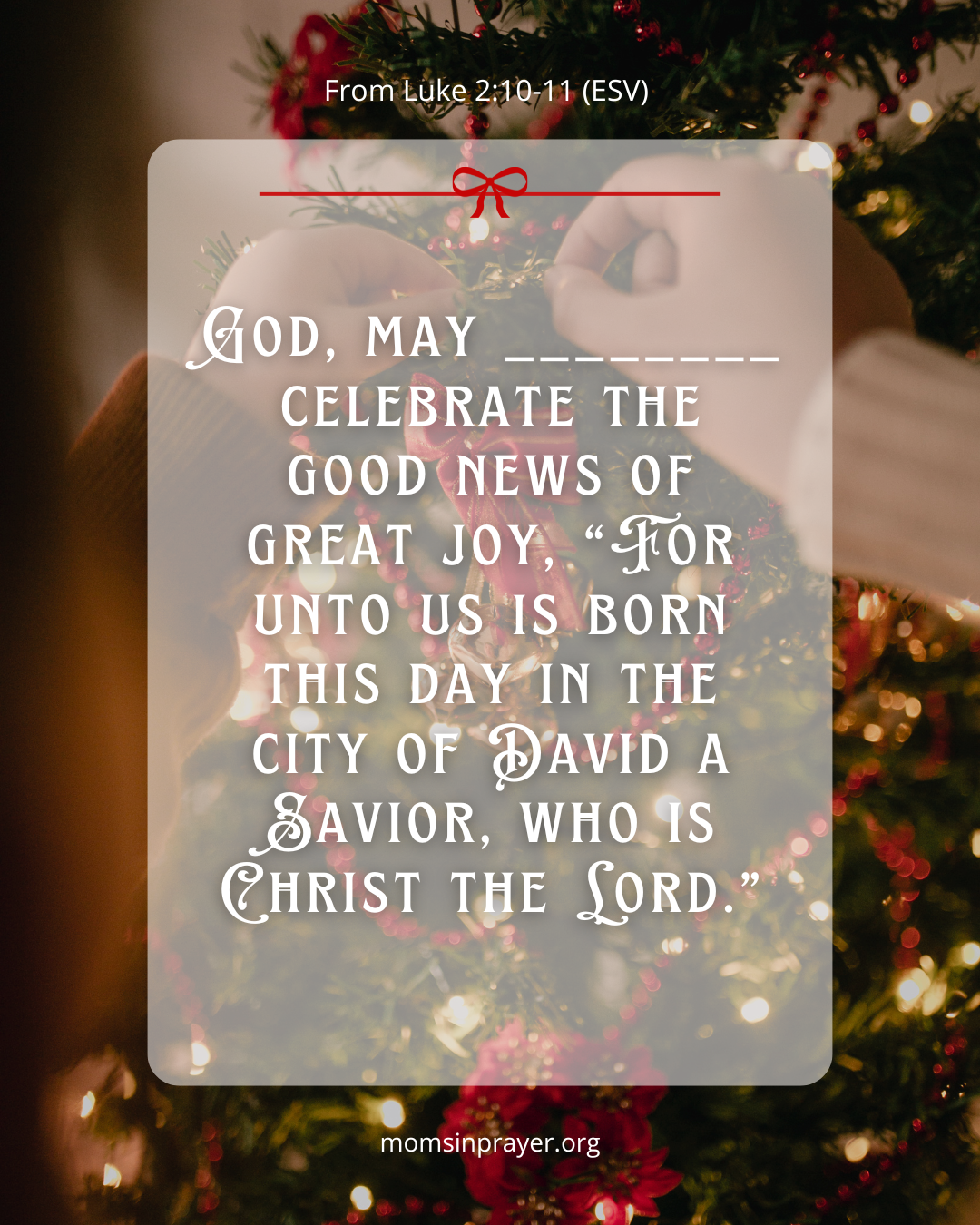 God, may ________ celebrate the good news of great joy, “For unto us is born this day in the city of David a Savior, who is Christ the Lord.” From Luke 2:10-11 (ESV)