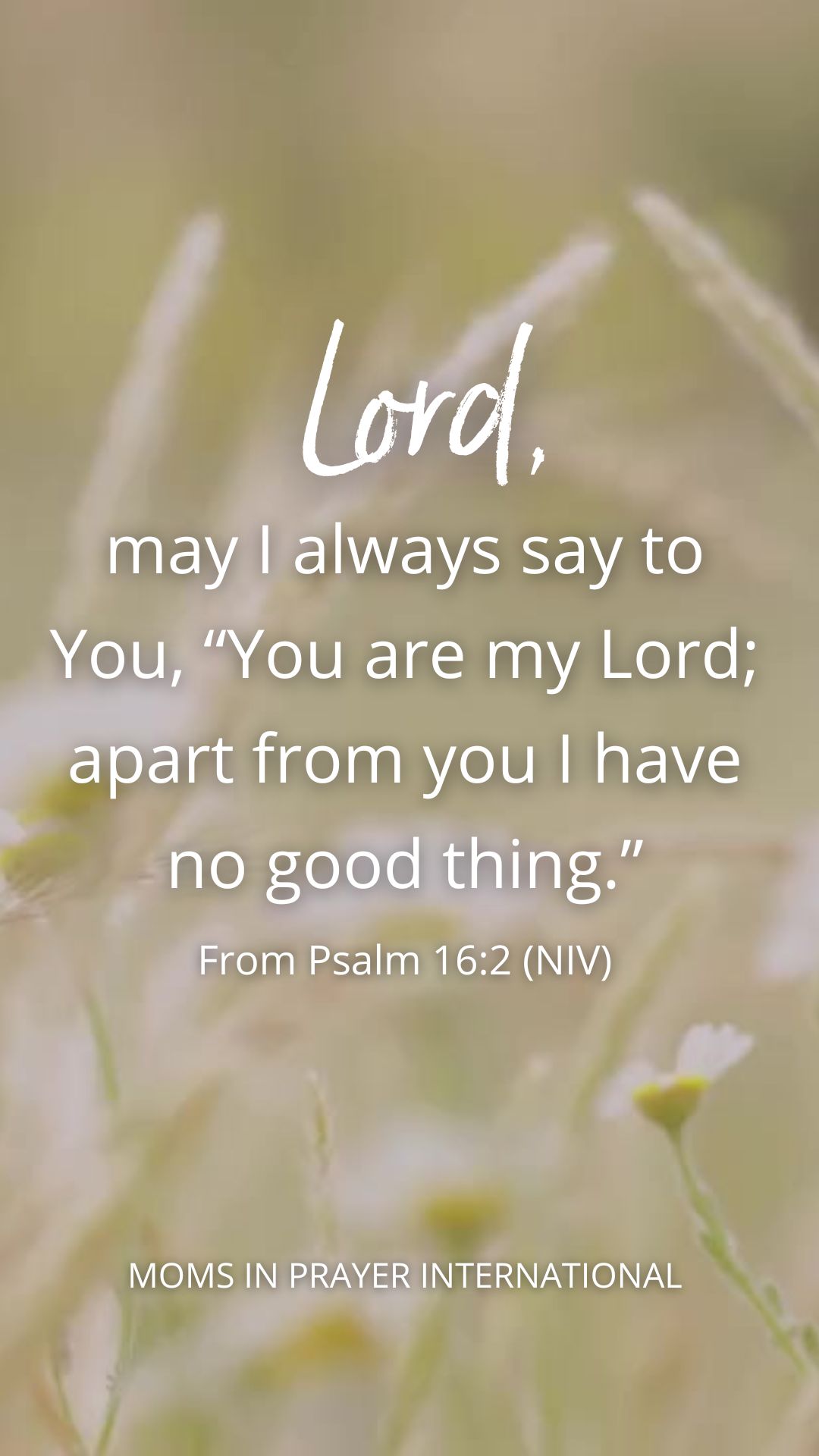 Lord, may I always say to You, “You are my Lord; apart from you I have no good thing.”
