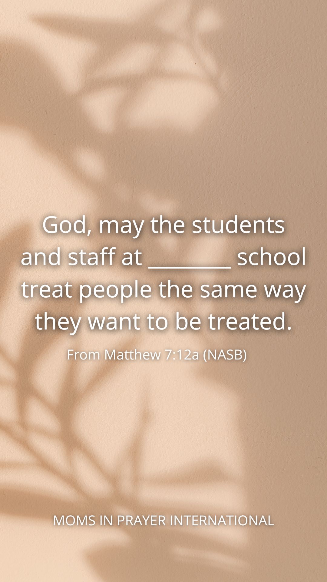 God, may the students and staff at ________ school treat people the same way they want to be treated.
