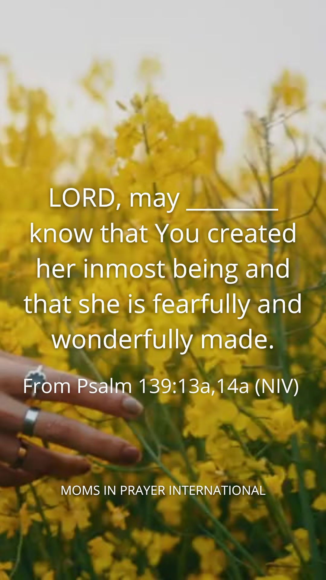 LORD, may ________ know that You created her inmost being and that she is fearfully and wonderfully made.