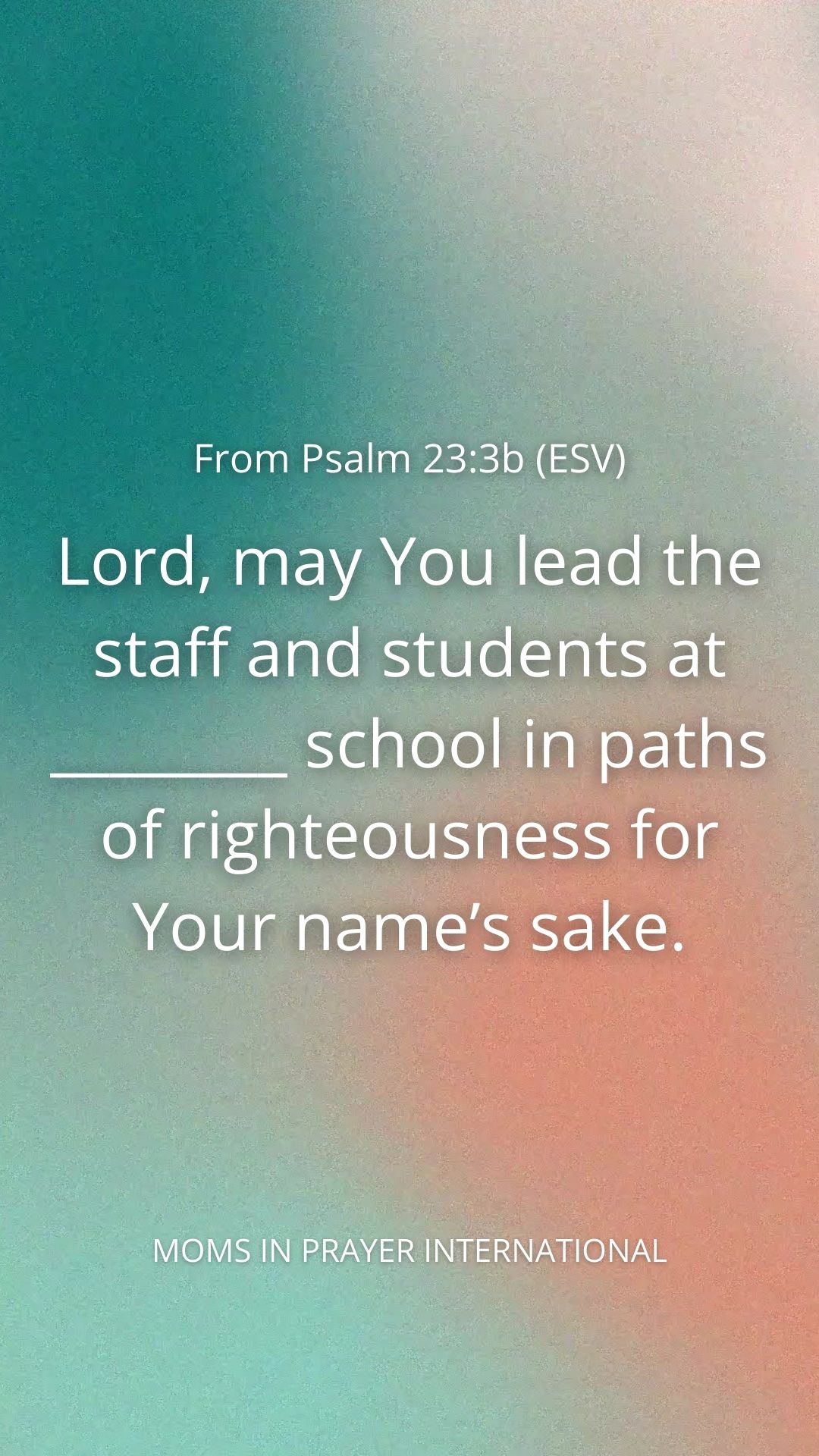 Lord, may You lead the staff and students at ________ school in paths of righteousness for Your name’s sake.