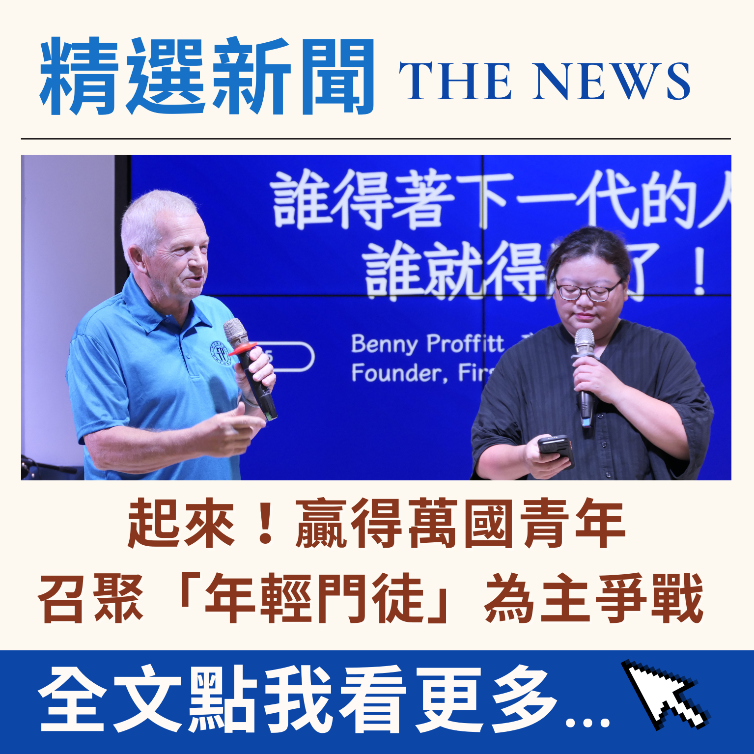 「贏得萬國青年,基督在下一代中的盼望!」由台灣國際體育運動協會TISA與OM世界福音動員會共同合辦,邀請來自美國的機構First Priority Global 全球第一優先團隊,主題為「贏得萬國下一代歸向基督的策略」….
