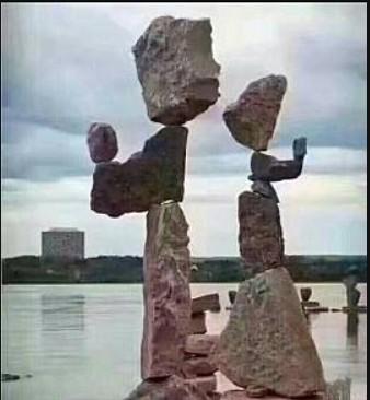再看這張照片,感到「心有戚戚焉」,因為覺得自己也是力不能勝,快要「垮掉」,這個煩惱,那個擔心,這個、那個大難題,壓力超大…再仔細看,這兩個看似要崩掉的「石頭人」卻是穩穩站立,沒有要倒下的跡象,並且還讓人感到「很安好」!