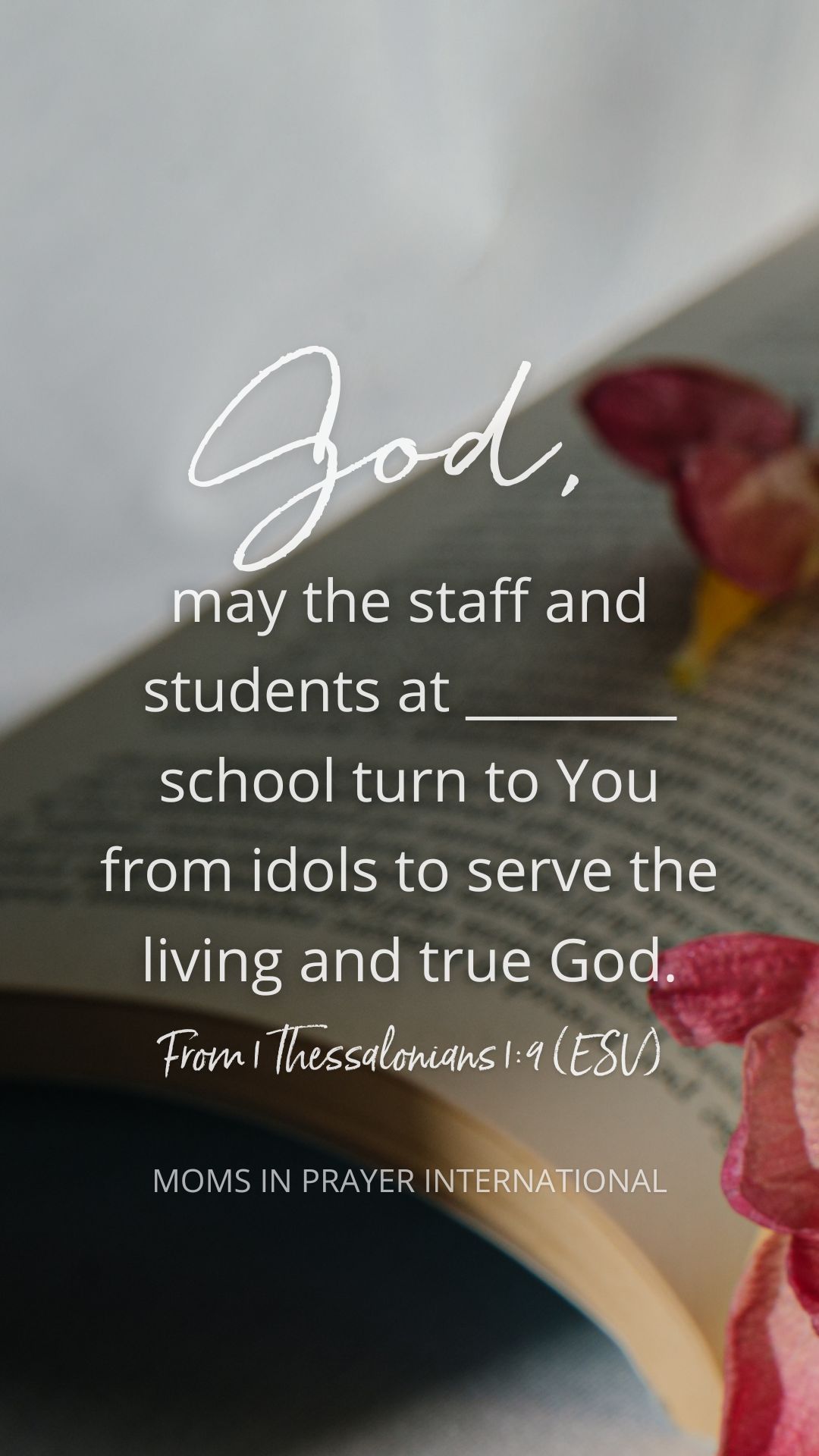 God, may the staff and students at ________ school turn to You from idols to serve the living and true God.