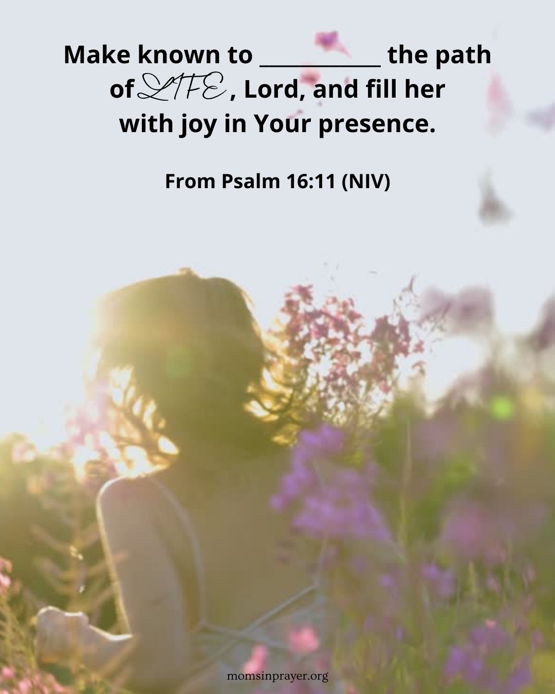 Make known to ______ the path of life, Lord, and fill her with joy in Your