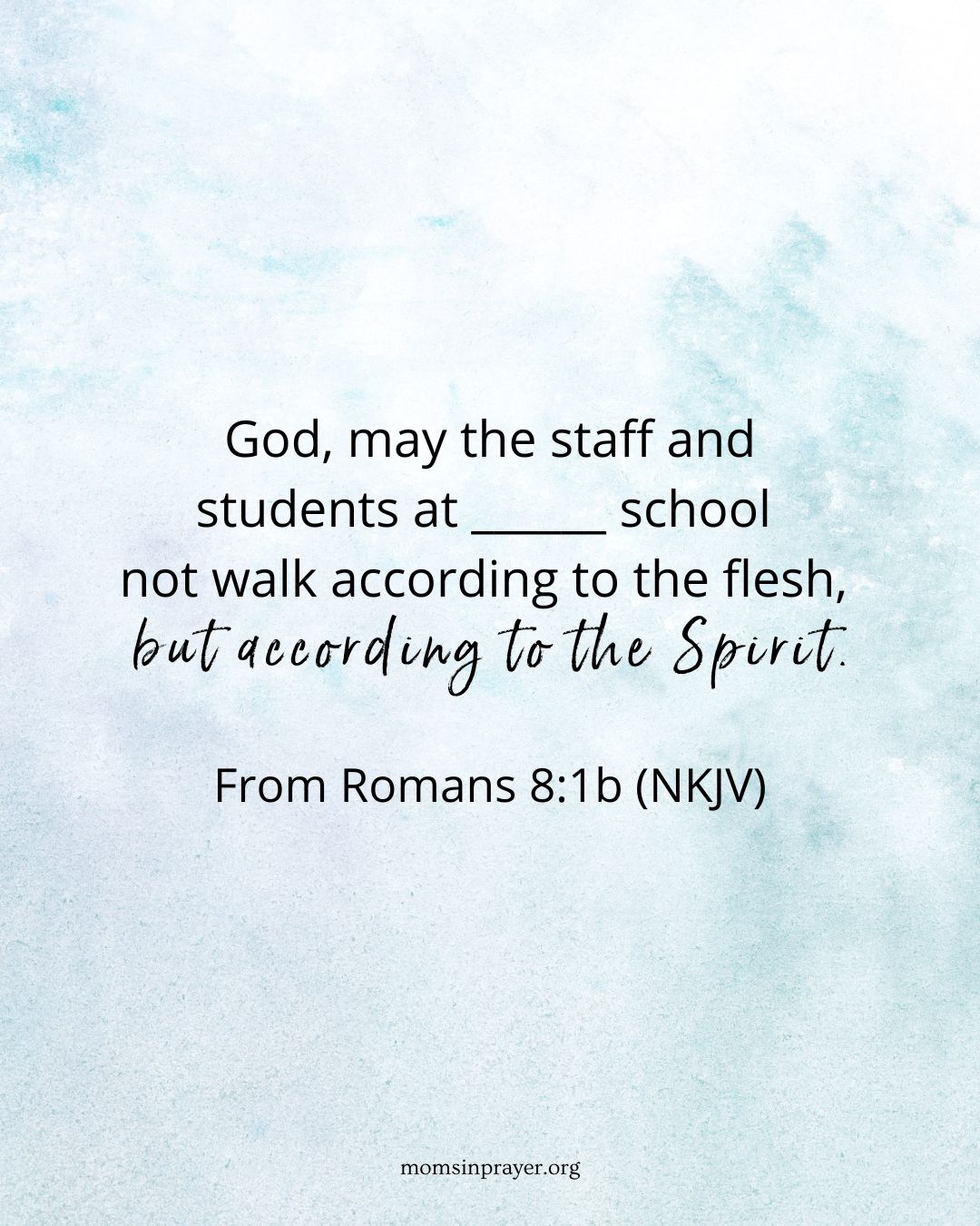 God, may the staff and students at ______ school not walk according to the flesh, but according to the Spirit.
