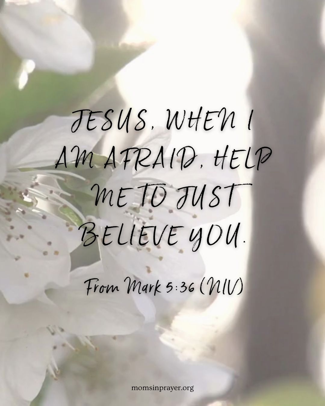 喔!主耶穌基督!當我害怕時,求祢幫助我單單倚靠祢。因祢說:不要怕! 只要信!