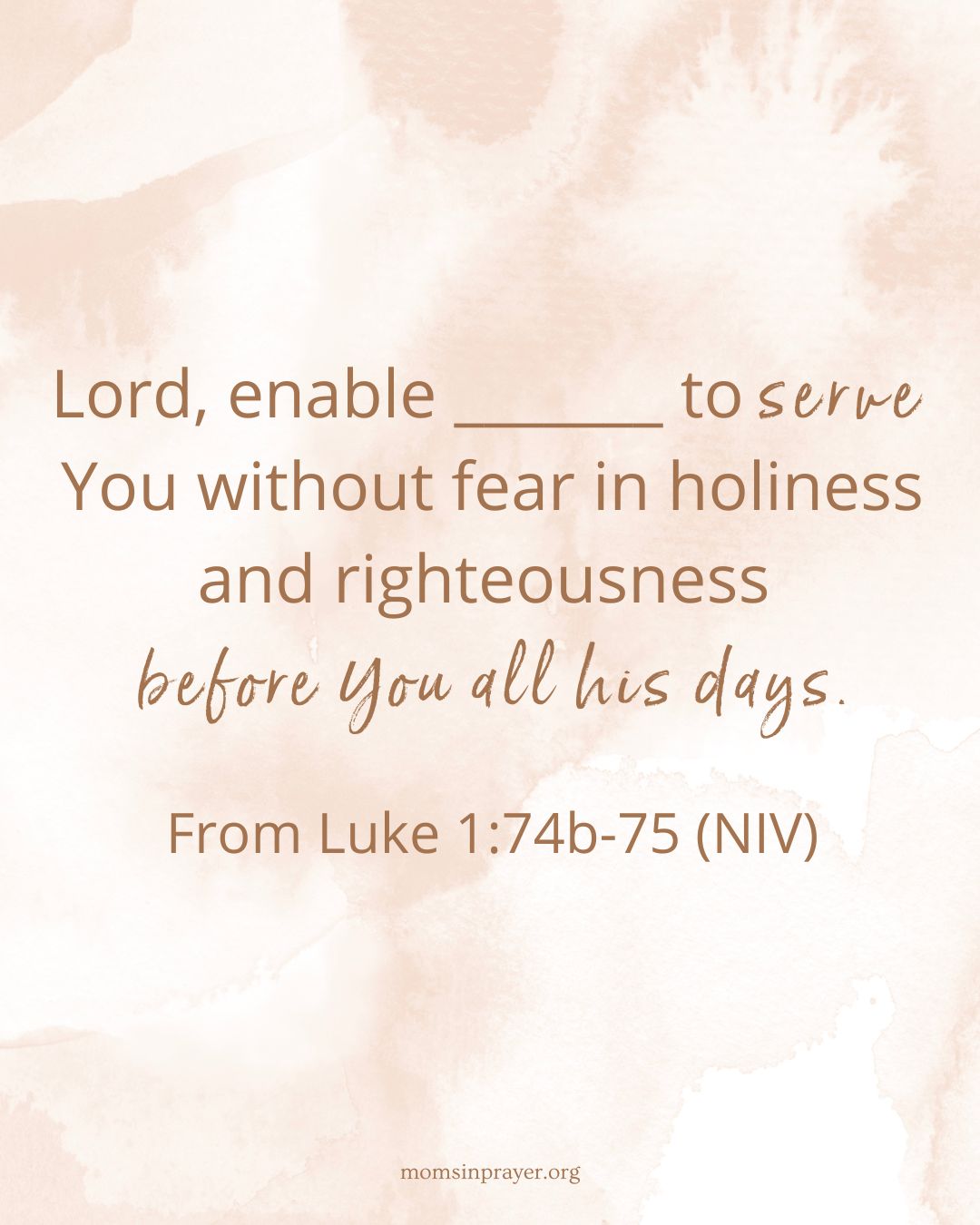Lord, enable _______ to serve You without fear in holiness and righteousness before You all his days.