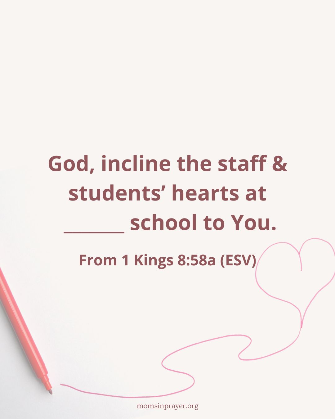 God, incline the staff & students’ hearts at _______ school to You.