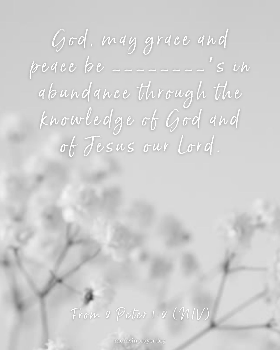 神啊,願恩惠、平安,因 ________ 認識神和我們主耶穌,多多的加給他/她。