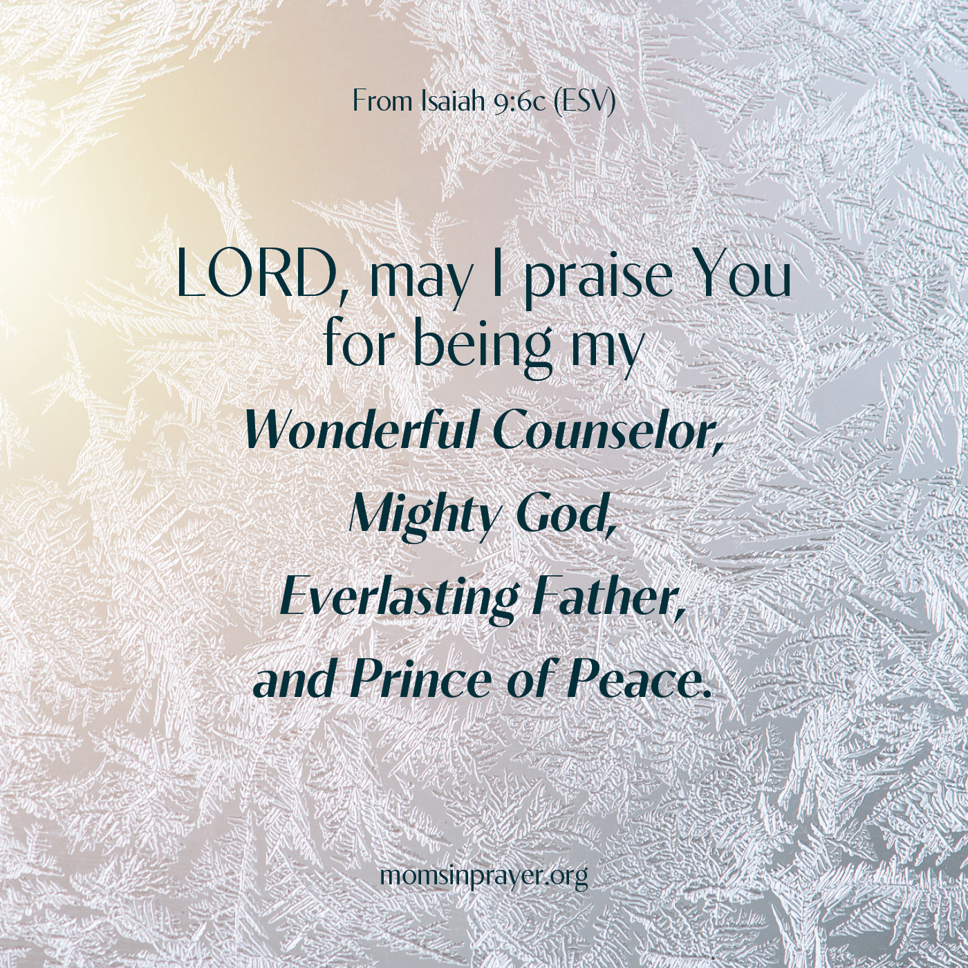 LORD, may I praise You for being my Wonderful Counselor, Mighty God, Everlasting Father, and Prince of Peace.