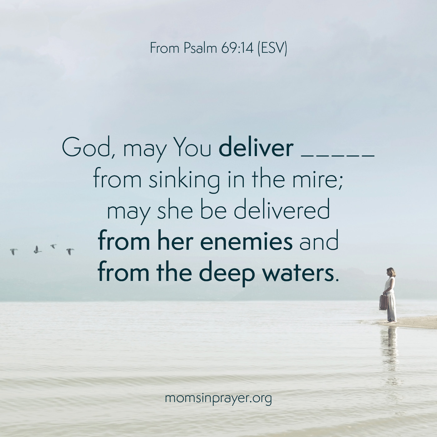 God, may You deliver ________ from sinking in the mire; may she be delivered from her enemies and from the deep waters.